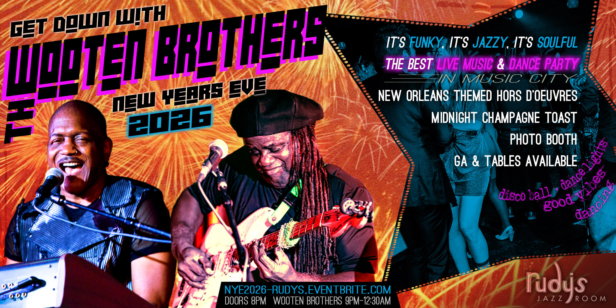 Celebrate New Years Eve at Rudy's Jazz Room with "The Get Down" and the Wooten Brothers!